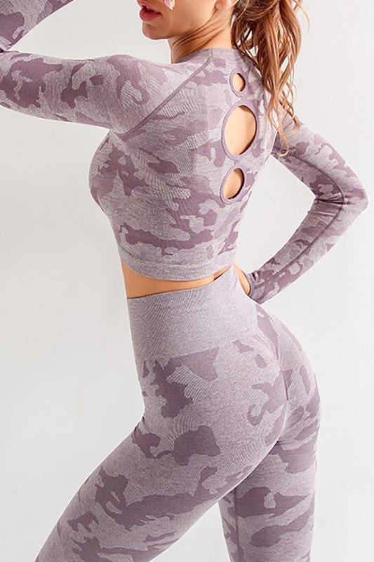 Seamless Two Pieces Long Sleeve Print Yoga Set