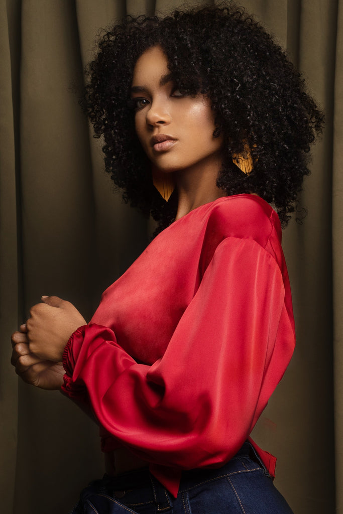 Turn heads in our red Satin One-Shoulder Blouse, a captivating blend of romance and modern style. This luxurious blouse features a silky, copper-hued fabric that drapes elegantly over every silhouette, creating a flattering and effortless look. The one-shoulder design is complemented by a long, romantic bishop sleeve, while the adjustable waist tie adds a contemporary twist, giving you a customized, polished fit. Perfect for pairing with your favorite high-waisted pants or skirts, this blouse is a statement piece for any occasion.