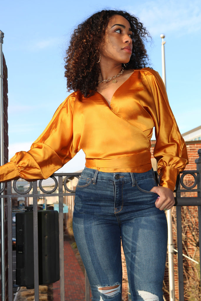 Sophia Honey Satin Wrap Top