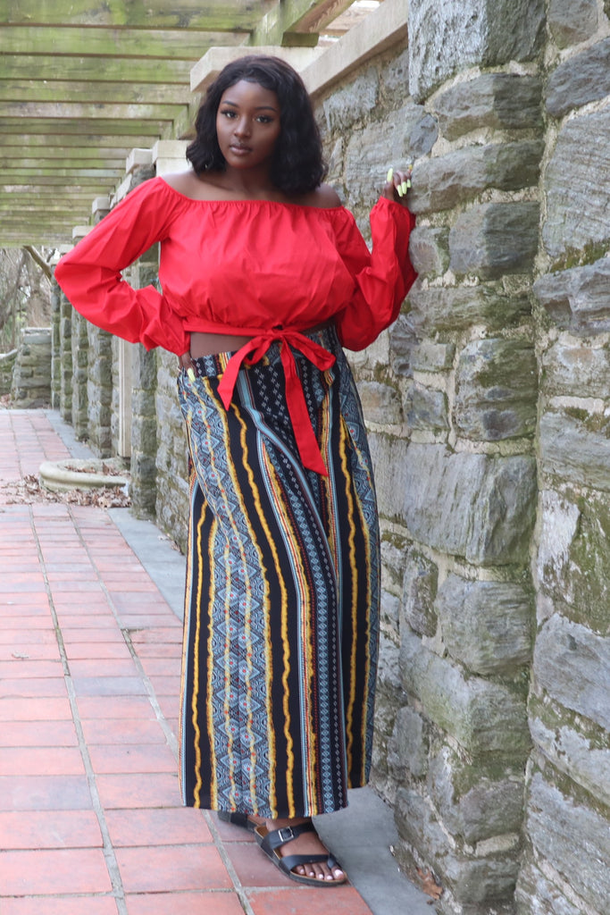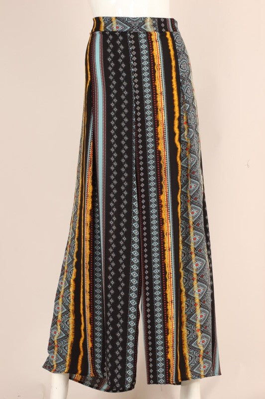 Work some statement prints into your wardrobe this season. Featuring a tribal border print fabric with a wide leg fit.