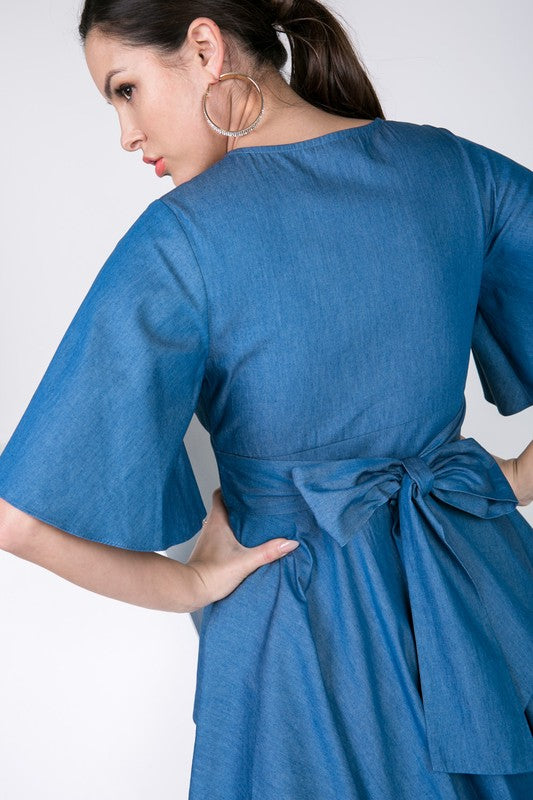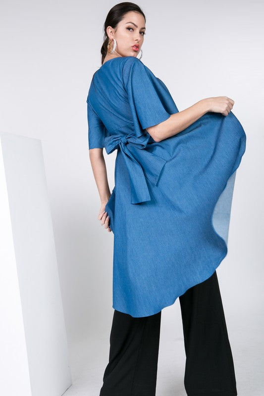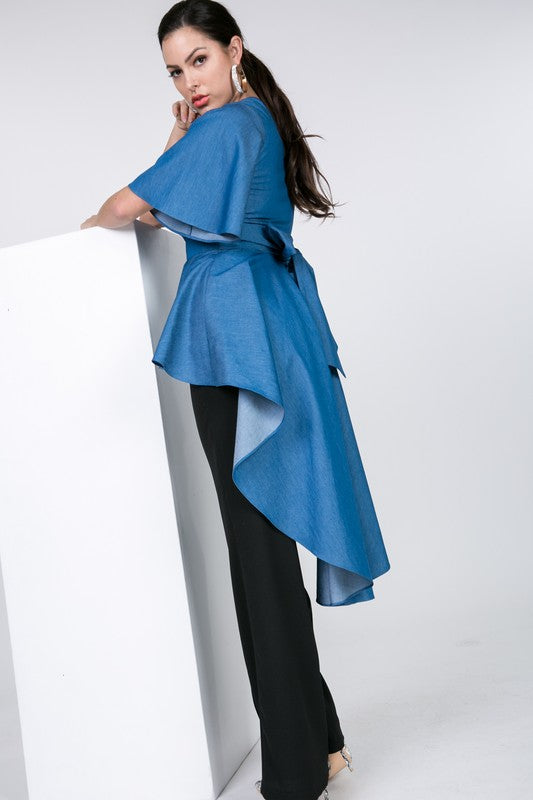 Chambray Hi Lo Flare Sleeve Top