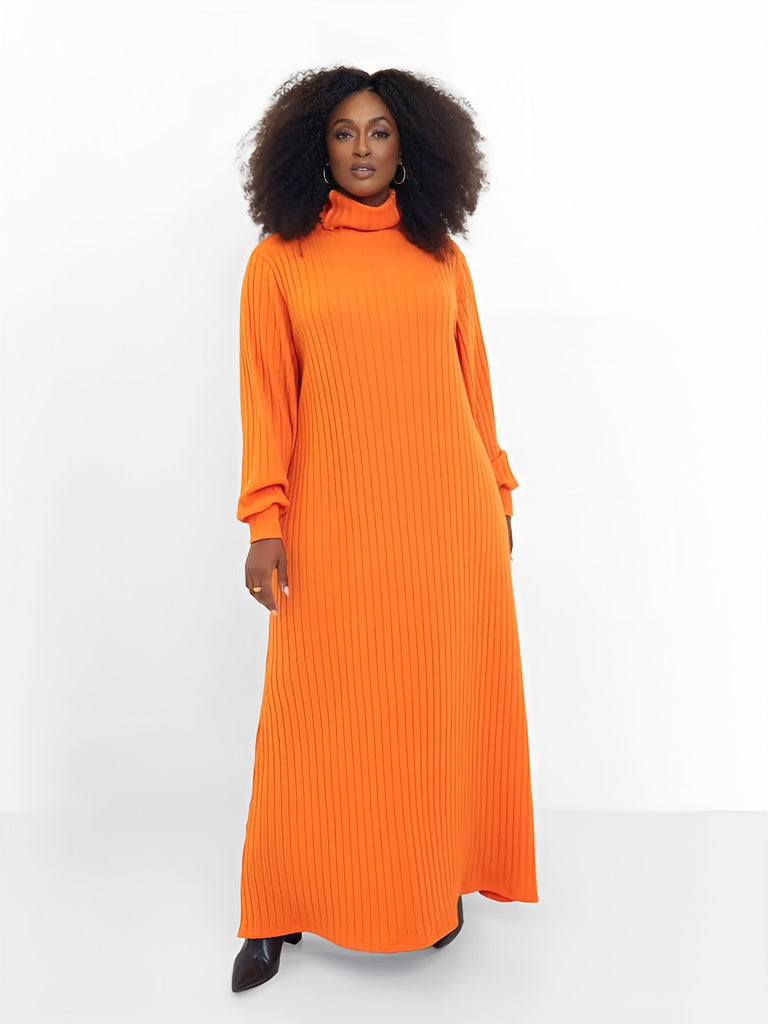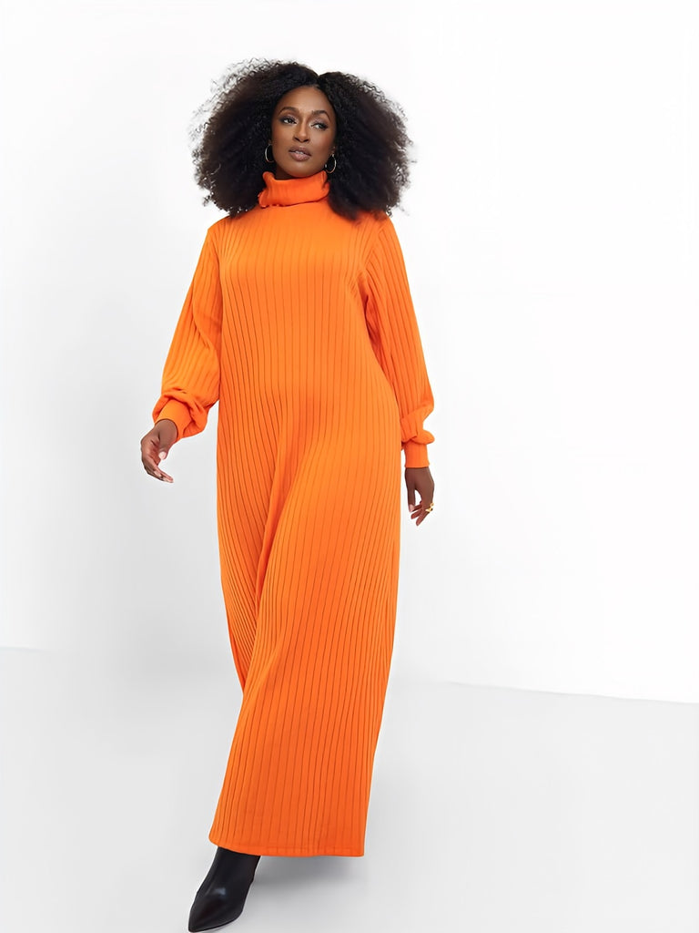 Orange Ribbed Turtleneck Oversized Maxi Dress