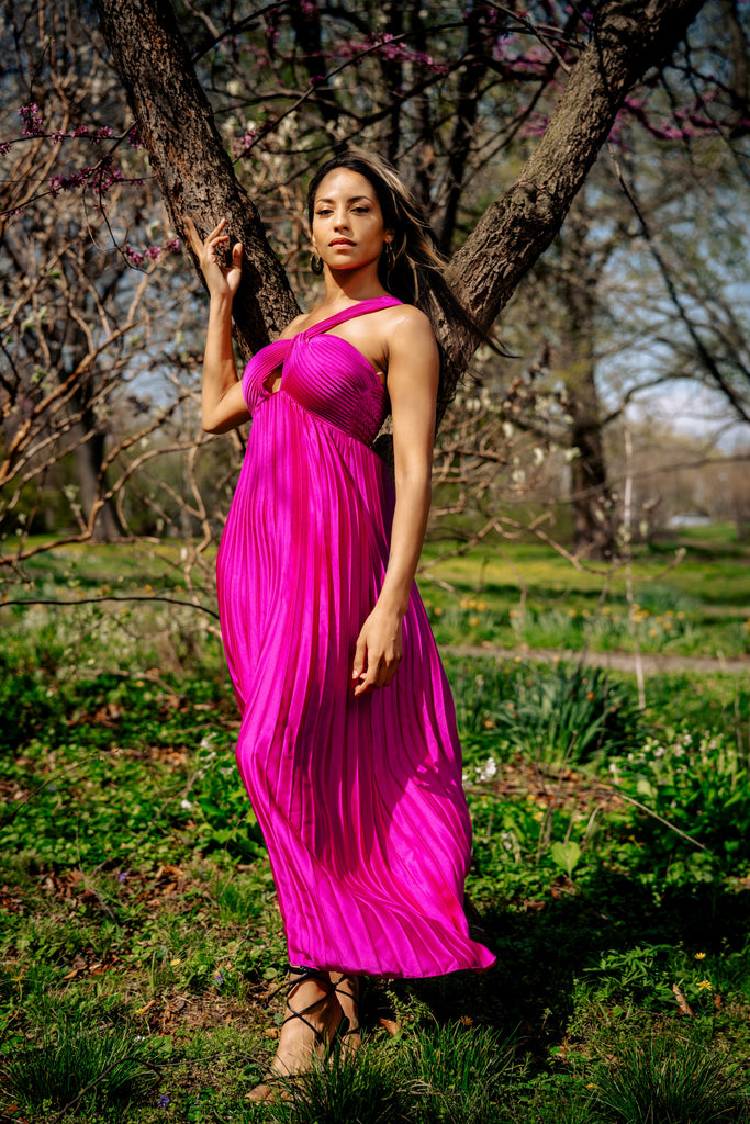 Whether you're wandering through gardens or attending a sunset soirée, this vibrant fuchsia hue delivers bold, feminine energy with a touch of luxury.