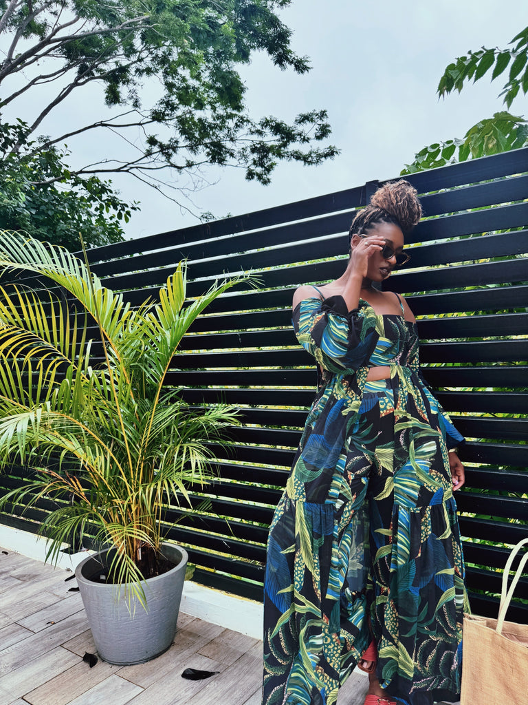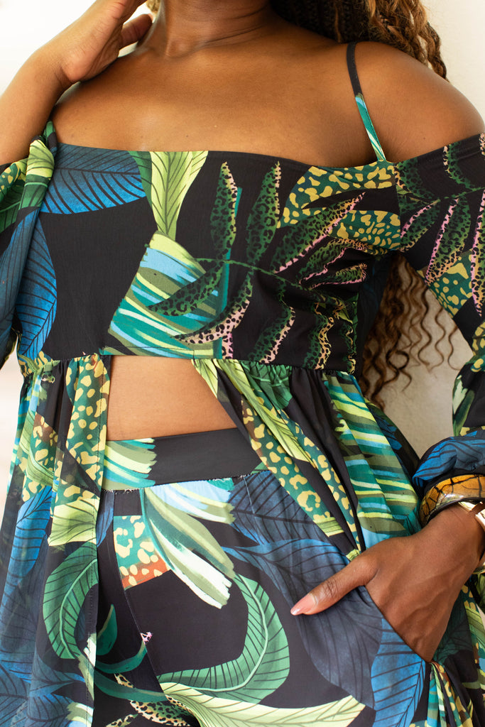 Unleash your style with the Priya Two-Piece Pant Set, a vibrant ensemble combining elegance and functionality. The off-the-shoulder top features a ruffled bottom, adjustable straps, and a chic tie-back detail for a perfect fit, complemented by a side zipper for ease. Paired with flowy wide-leg pants featuring convenient side pockets, this set ensures both comfort and flair. Ideal for vacations, brunches, or casual evenings, Priya is the ultimate fusion of statement fashion and practicality.