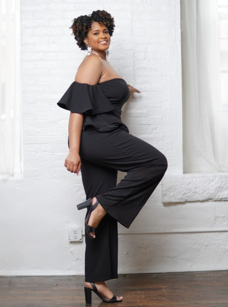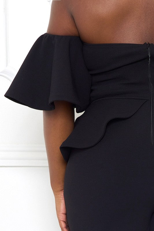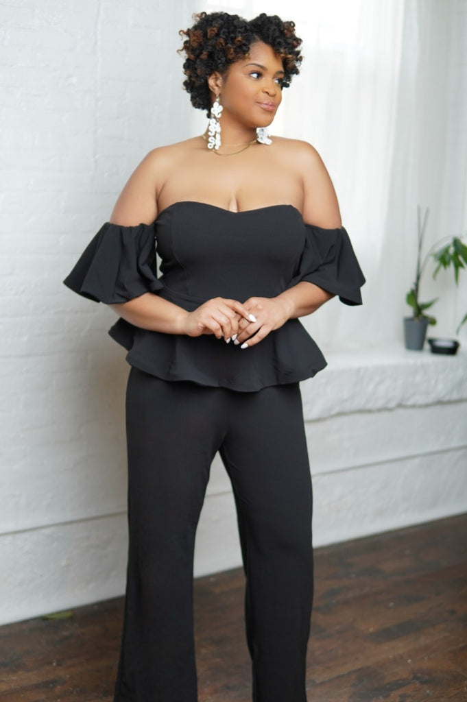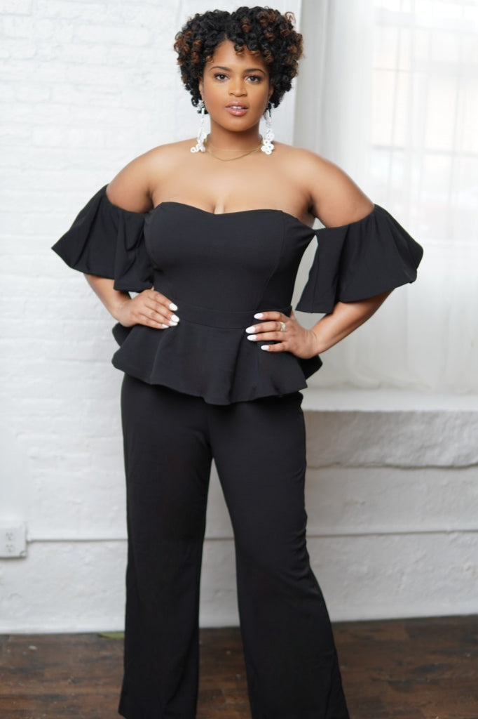 Black Open Shoulder Peplum Jumpsuit