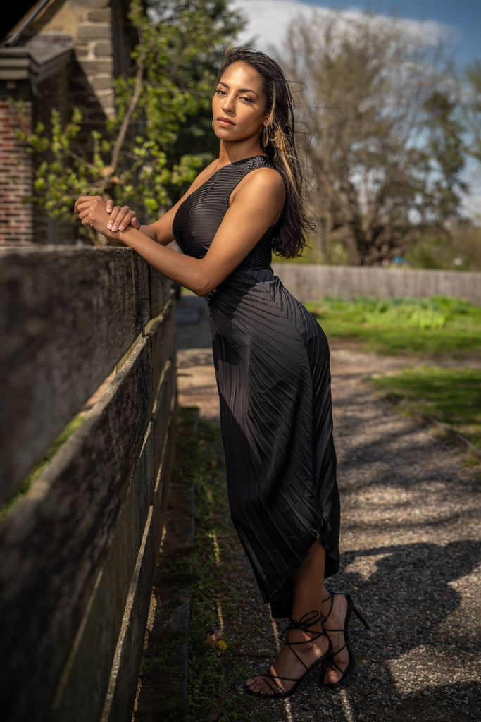 Noir Eclipse Pleated Midi Dress