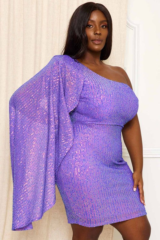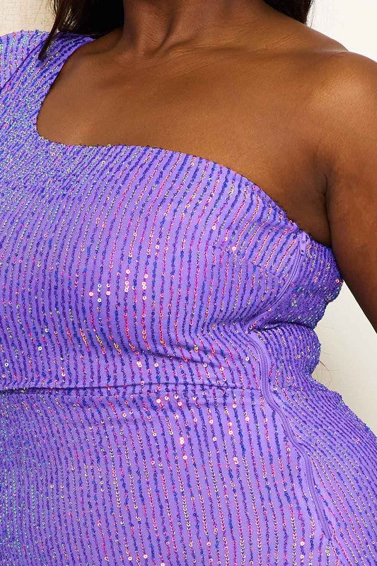 Make a stunning entrance with this gorgeous bodycon dress. Its eye-catching violet sequin material sparkles under the lights, while the elegant one shoulder design and stylish draped detail complete the look. You're sure to turn heads and receive compliments wherever you go in this show-stopping piece.