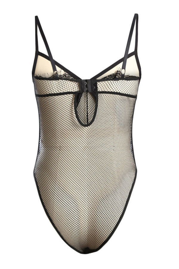 Black Sheer Eyelash Lace Teddy Bodysuit