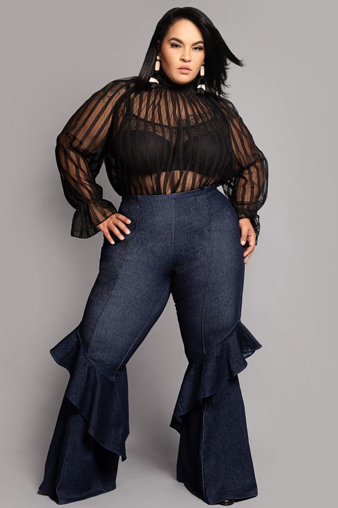 Black Sheer Stripe Mesh Top