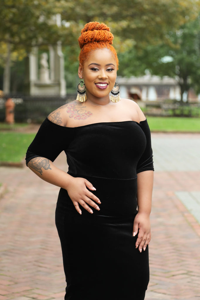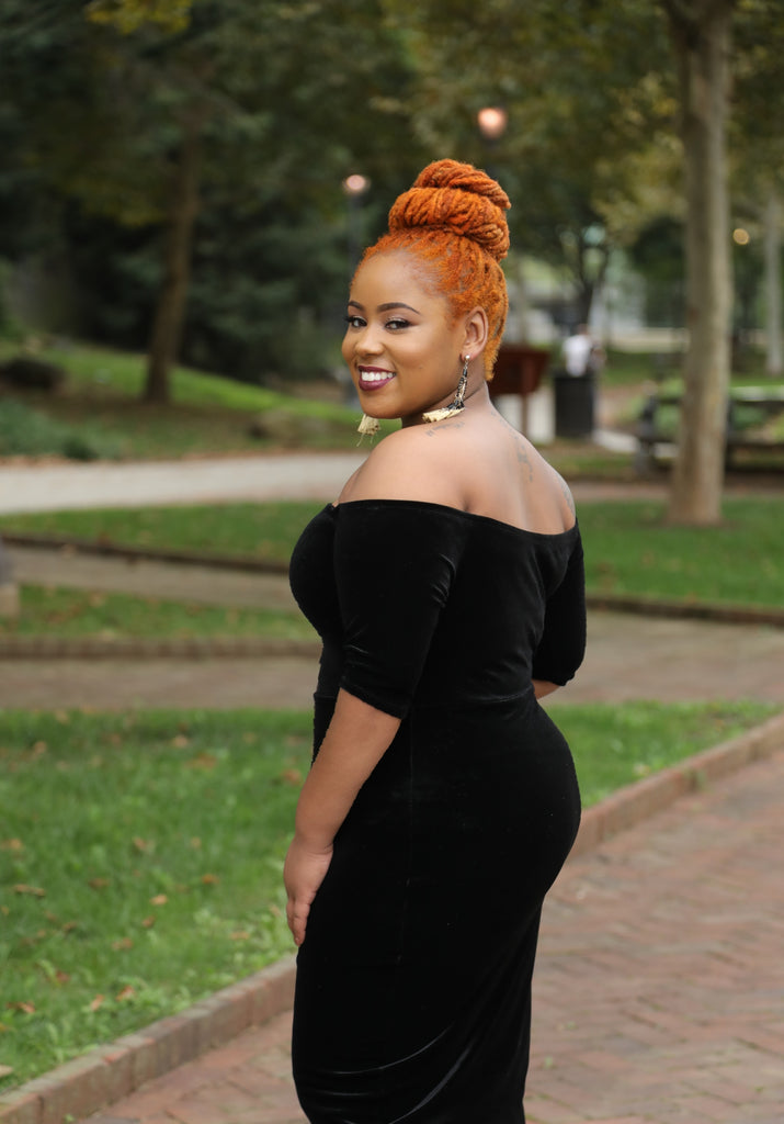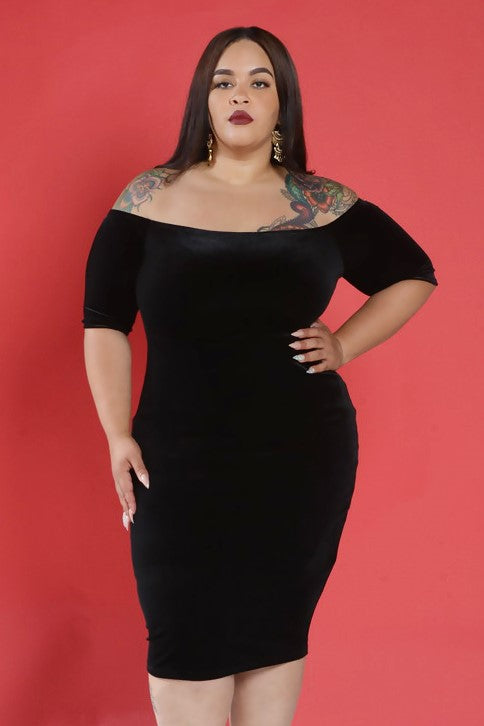 Black Velvet Off the Shoulder Bodycon Dress