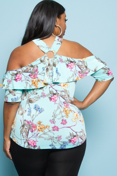 Blue Print Cold Shoulder Top