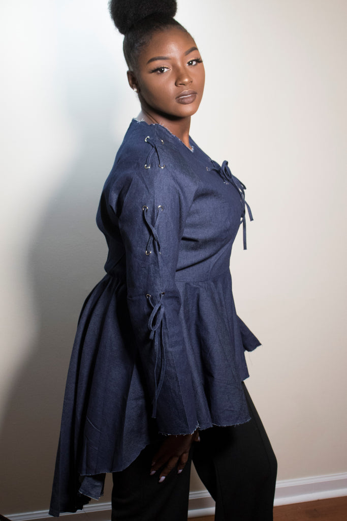 Denim Lace up Peplum Top