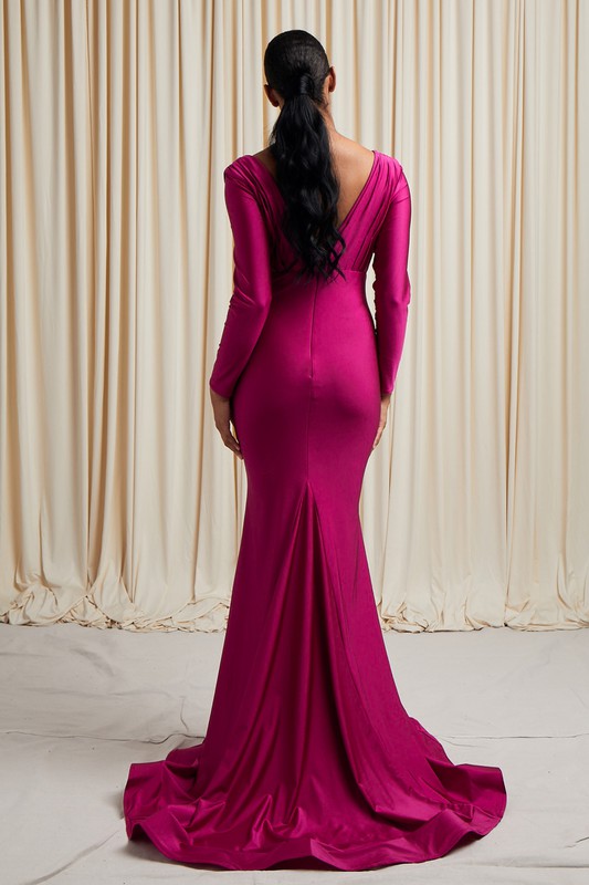Magenta Deep V Neck Trumpet Gown