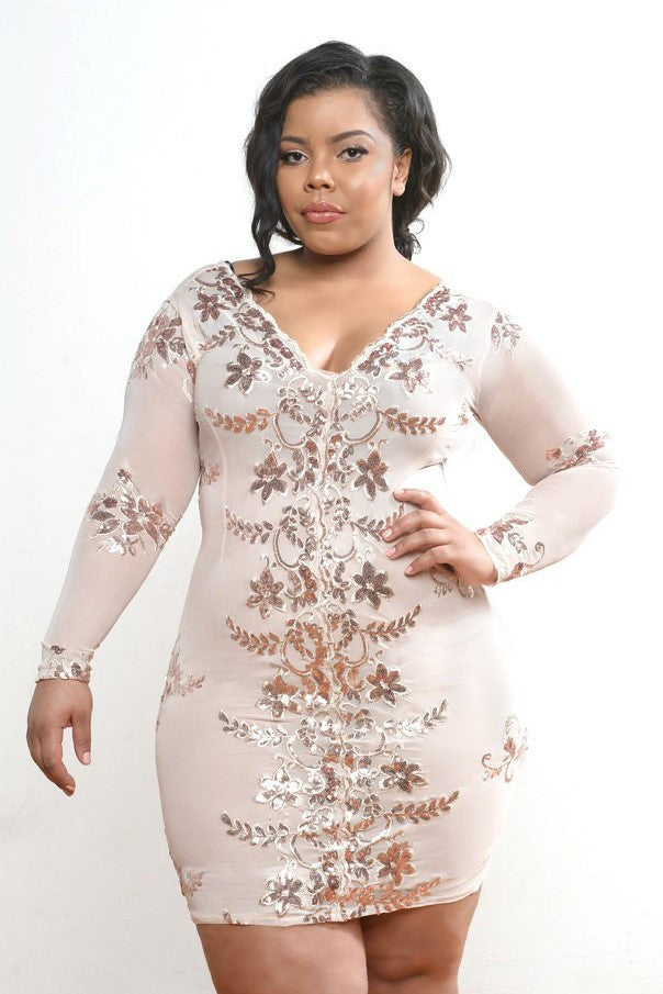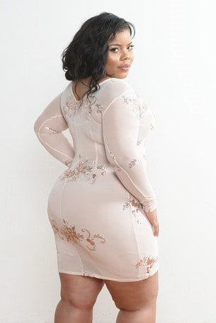 This dazzling sequin body-con dress features a stretchy mesh fabric, long sleeves, see through fabric. Perfect for a night out.