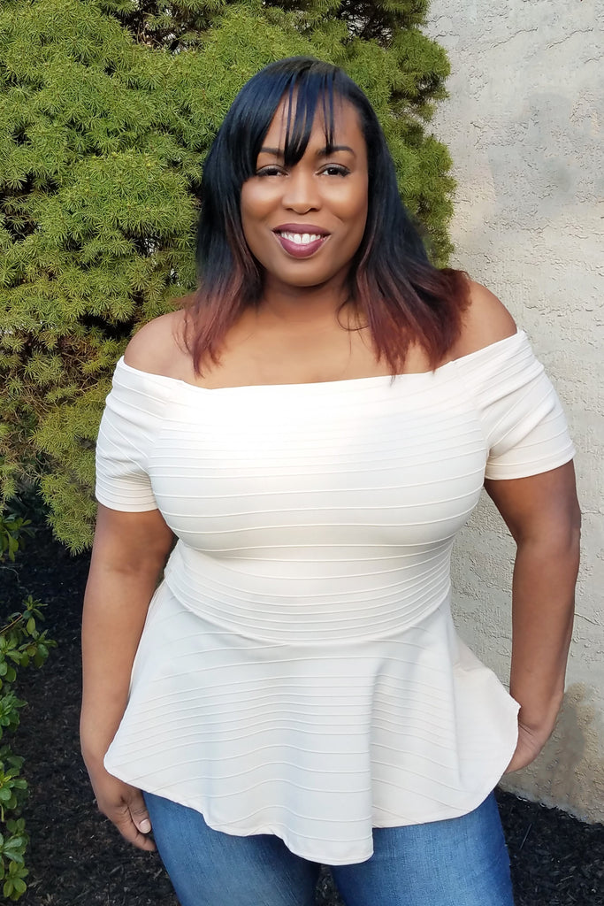 Taupe textured stripe knit off shoulder peplum top with short sleeves