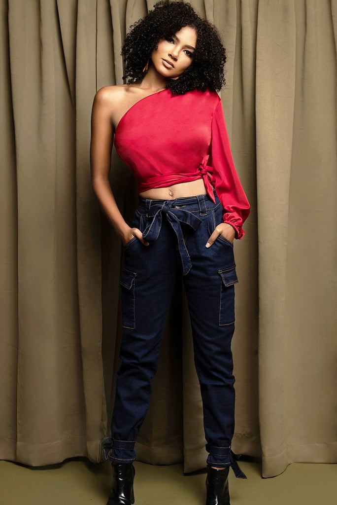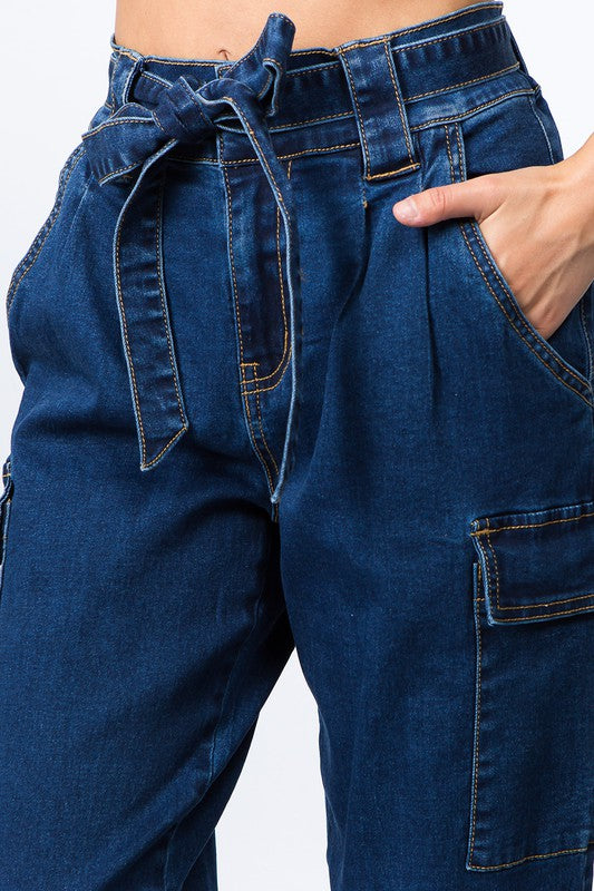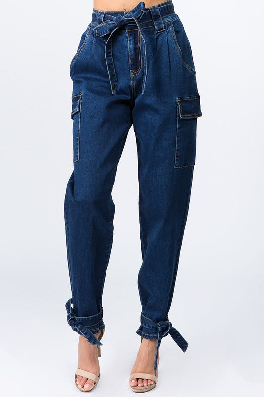 A paper-bag-waist, slouchy silhouette and tapered leg give these jeans a distinctive and fashion-forward style.