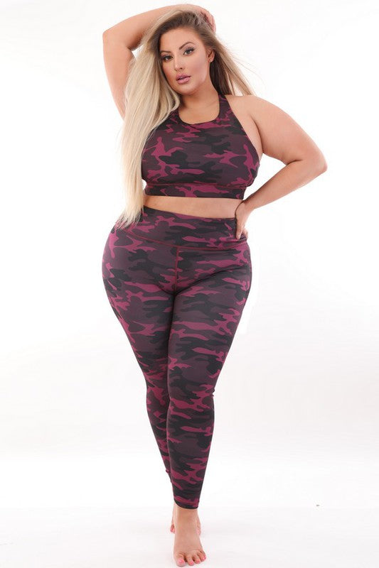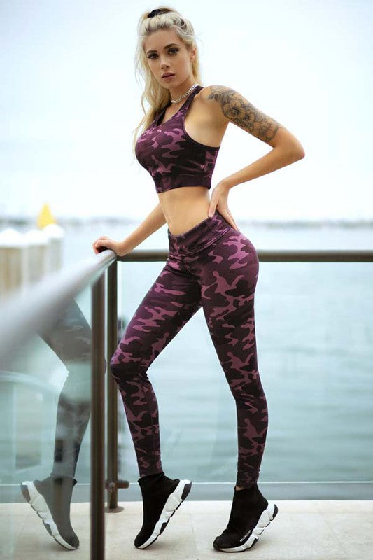 Add to your active lifestyle the experience of full comfort with our striking new complete and stylish pink camouflage two-piece sports bra and leggings combo. You can never go wrong with this super combo.