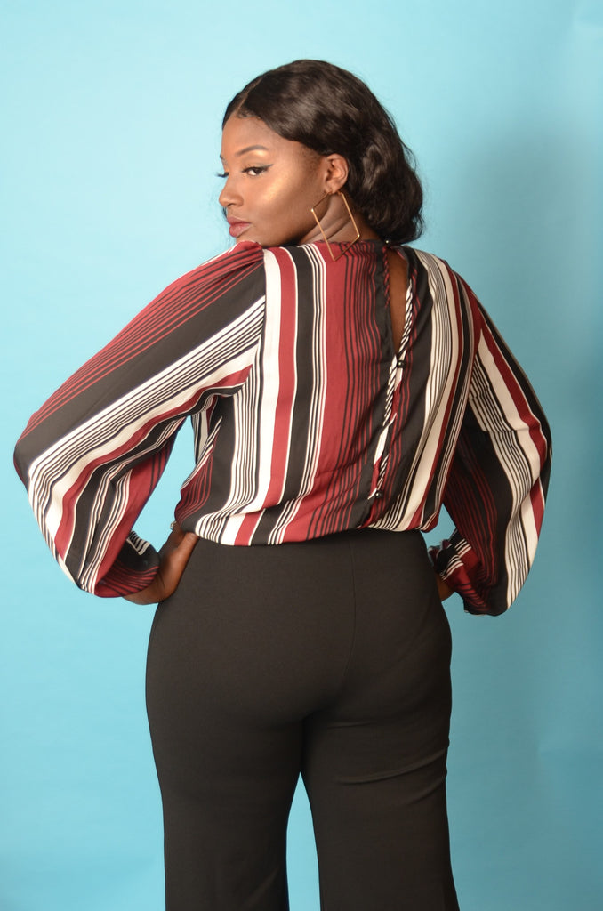 Red Stripe Bodysuit Blouse