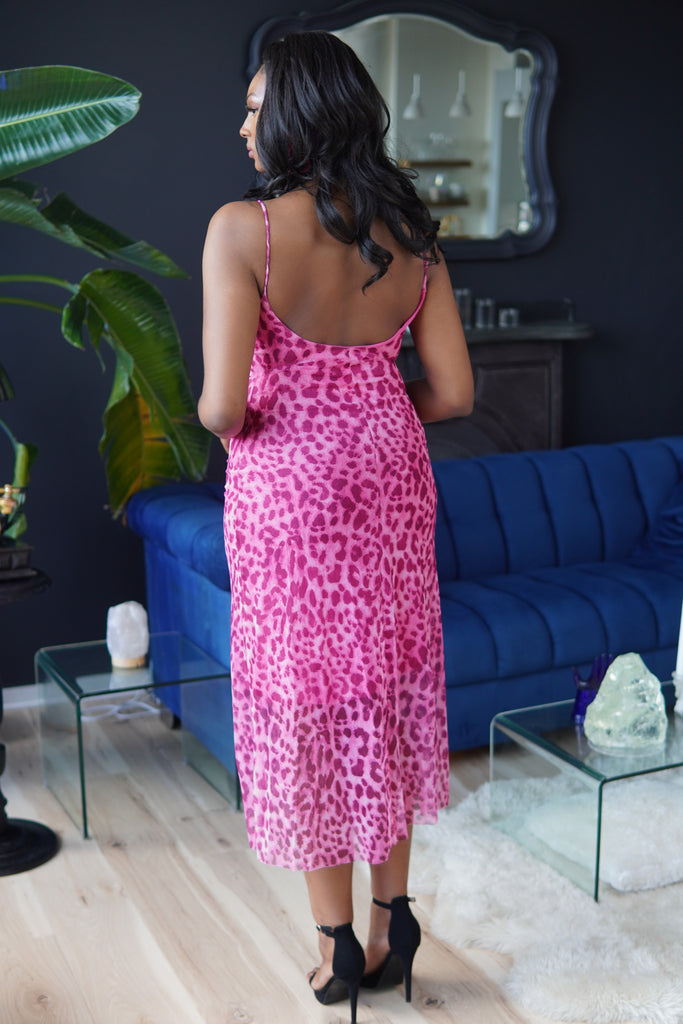 Unleash your wild side with the Wild Rose Leopard Print Midi Dress, a stunning piece that blends bold style with effortless elegance. This dress features a vibrant pink leopard print that adds a playful and fierce touch to your wardrobe. The cowl neckline and delicate spaghetti straps enhance the feminine silhouette, while the midi length offers a perfect balance of sophistication and charm. Crafted from lightweight, flowy fabric, this dress ensures comfort and ease of movement, making it ideal for any occasion. Dress it up with heels for a night out, or pair it with sandals for a chic daytime look. The Wild Rose Leopard Print Midi Dress is your go-to choice for making a statement and turning heads wherever you go.